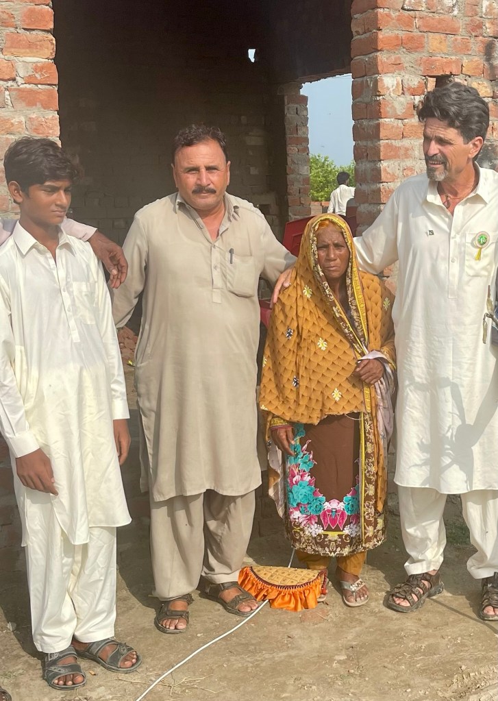 Sohail had been in this brickyard ever since he was a boy, 27 years ago.A family once enslaved, would have grown old in this brick yard, burdened with unlawful interest, for a nominal debt of Sohail’s father. It was not even allowed to have been buried in the ground with him, but placed upon the back of his son. In this photo Sohail is selling fruit from a used rickshaw with a loan he asked us for after Freedom Cry paid the unjust ransom for his family’s freedom.Sohail had asked to borrow $200 for a used rickshaw and motorcycle, and he instantly began selling fruit along the roadside. Soon he was able to upgrade to a better rickshaw and motorcycle.Our Pakistani director told me that Sohail was making better money than he was as an educator in a government school. And his wife and four daughters are no longer slaves in 100 degree summer heat or in the winter cold.This was the last of the individual family’s freed from the Rohan brick yard until I arrived in person in August 2020 to pay ransom on the remaining nine. I was asked to render a ‘Freedom Merferd’. The character, ‘Merferd’ had some fans in Pakistan. The idea came; The brick yard’s name or brand is stamped on every brick, hence the brick branded with the word; FREEDOM in Merferd’s hand. The siblings were forced to continue a quota of brick making even after their mother had succumb to the high summer heat and in a hospital, with their father at her side. They were blessed to not lose their mother, as too many other children have.A pastor had placed aFreedom Merferd banner I had sent ahead, as a promise of their release. With ma and pa, their own courtyard, their own cow, the father does not have to slave ten hours a day suffering from asthma. Nor the children. The mother healed up after three days of heat stroke, and the father has got a real job!